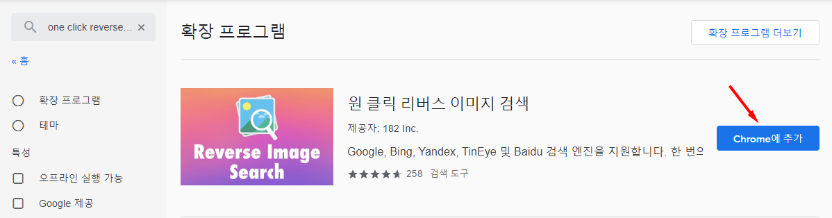 검색창에 'one click reverse image'라고 검색해 보세요.