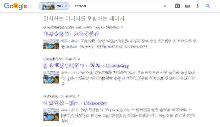 숙박업소 등에서 동일한 사진을 이용하기 때문에 검색결과가 많이 나타나네요.